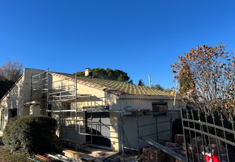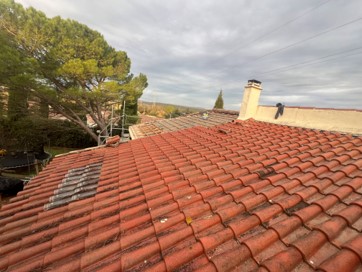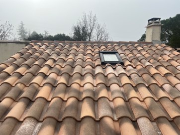 Rénovation intégrale d'une double toiture, reprise de la charpente, réfection des rives, changement des gouttières, pose des tuiles, installation d'un Vélux.